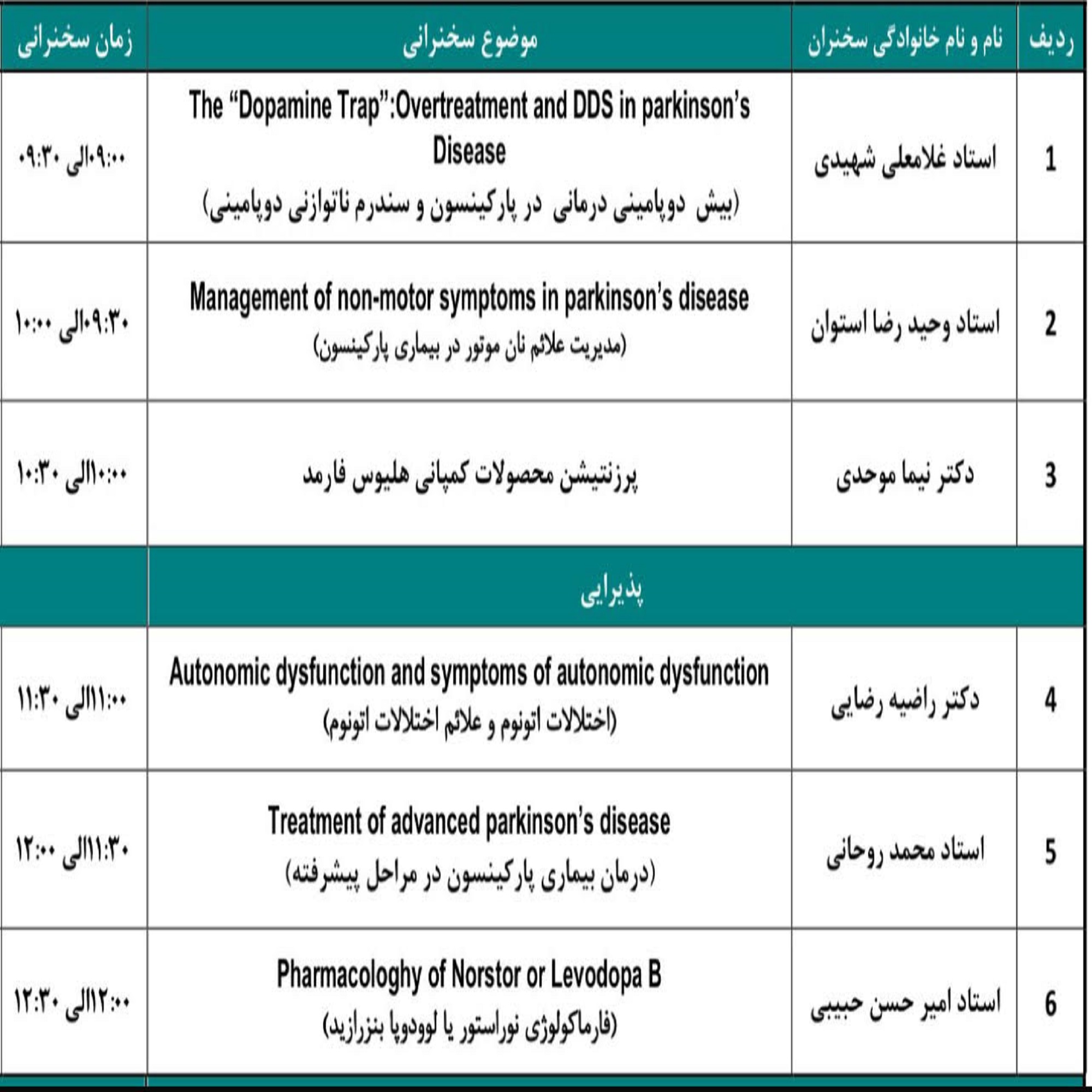 همایش علمی مدیریت بیماری پارکینسون با حضور جمعی از متخصصان و اساتید برجسته نورولوژی کشور برگزار می شود. در این برنامه تازه ترین دستاوردها و رویکردهای نوین در تشخیص و درمان بیماری پارکینسون مورد بررسی وتبادل نظر قرار می گیرد.